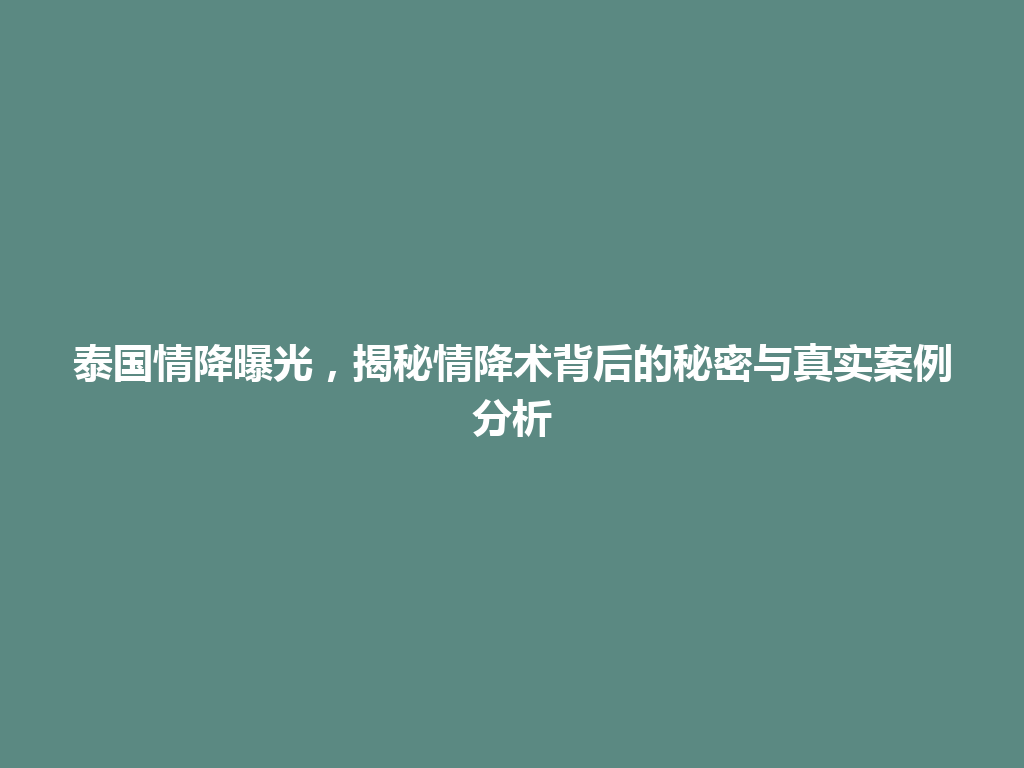 清丰县泰国情降曝光,揭秘情降术背后的秘密与真实案例分析